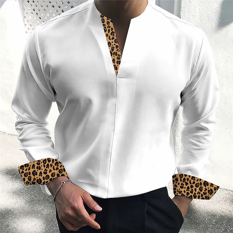 Men's Leopard Print Button Up Shirt Long Sleeve Business Casual Fashion Casual Casual Daily Spring Fall Winter Stand Collar Black White Beige