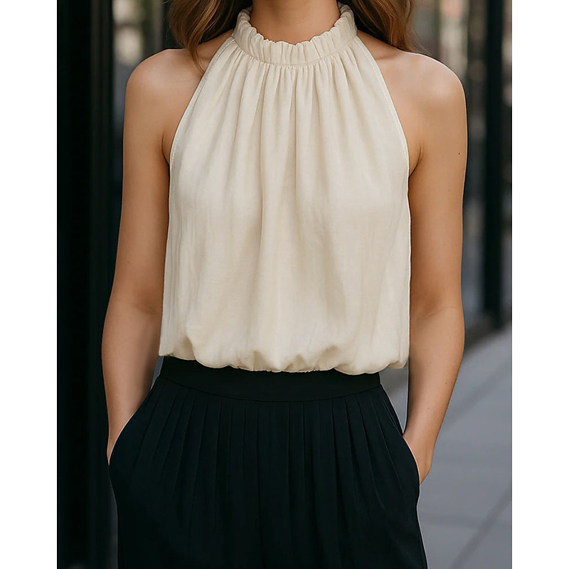 Women's T Shirt Blouse Solid Color Elegant Fashion Sleeveless High Neck Regular Tops Daily Going out Weekend Patchwork Summer Spring