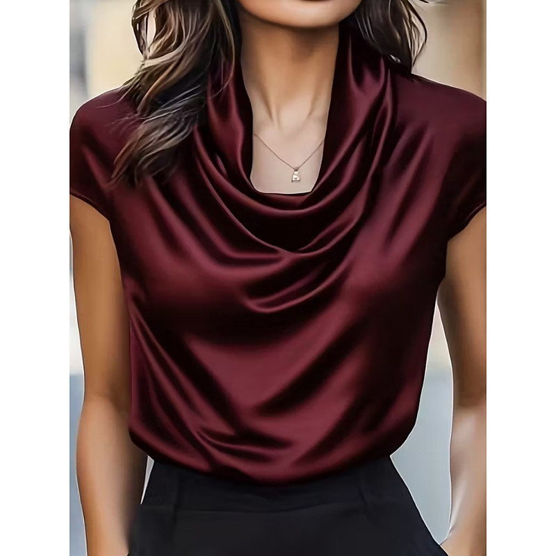 Women's Blouse Solid Color Elegant Stylish Casual Short Sleeve Cowl Neck Regular Tops Daily Ruched Black White Wine Brown Summer Spring