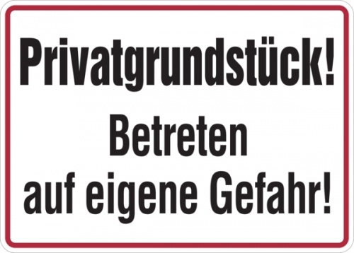 Hinweisschild, Privatgrundstück! Betreten auf eigene Gefahr, Aluminium, 250 x 350 mm - 350x250x0.45 mm Aluminium geprägt