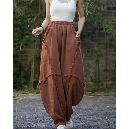 Per donna Pantaloni in cotone e lino Chinos Culotte Vacanza Streetwear Essenziale Lunghezza intera Vita media Semplice Tasca Fascia Elastica Inelastico Quotidiano All'aperto Streetwear Bianco latte