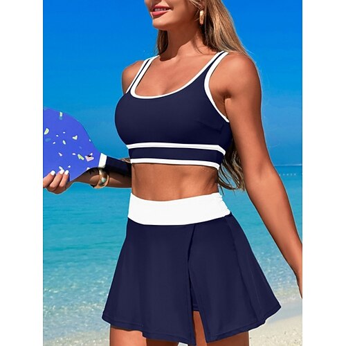 Women's Tankini 2 Piece Swimsuit Slimming Ruched Cheeky Tummy Control High Waist Slim Backless Vacation Beach Wear Color Block V Neck Sleeveless Bathing Suits