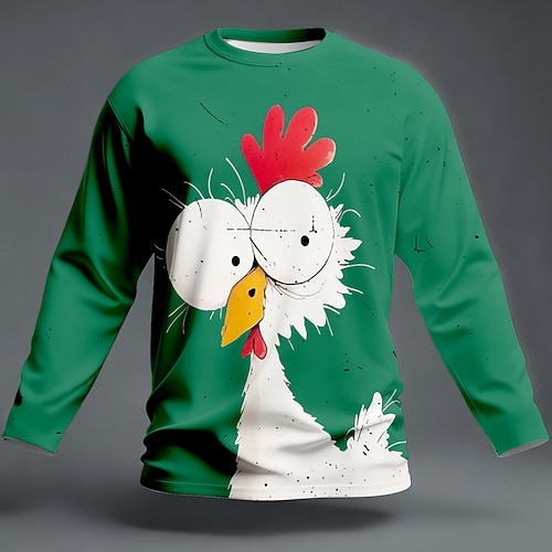 Herren Tiermotiv Hahn Lustig T Shirt Langarm T-Shirt 3D-Druck Rundhalsausschnitt Hemd Mode Basic Straße Lässig Täglich Blau Schwarz Gelb Sommer Frühling Bekleidung S M L XL XXL XXXL