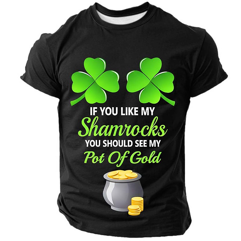 St Patricks Day If You Like My Shamrocks You Should See My Pot Of Gold Funny Men Black Graphic T Shirt Irish Clover Pot Of Gold Clothing Apparel S M L XL XXL XXXL