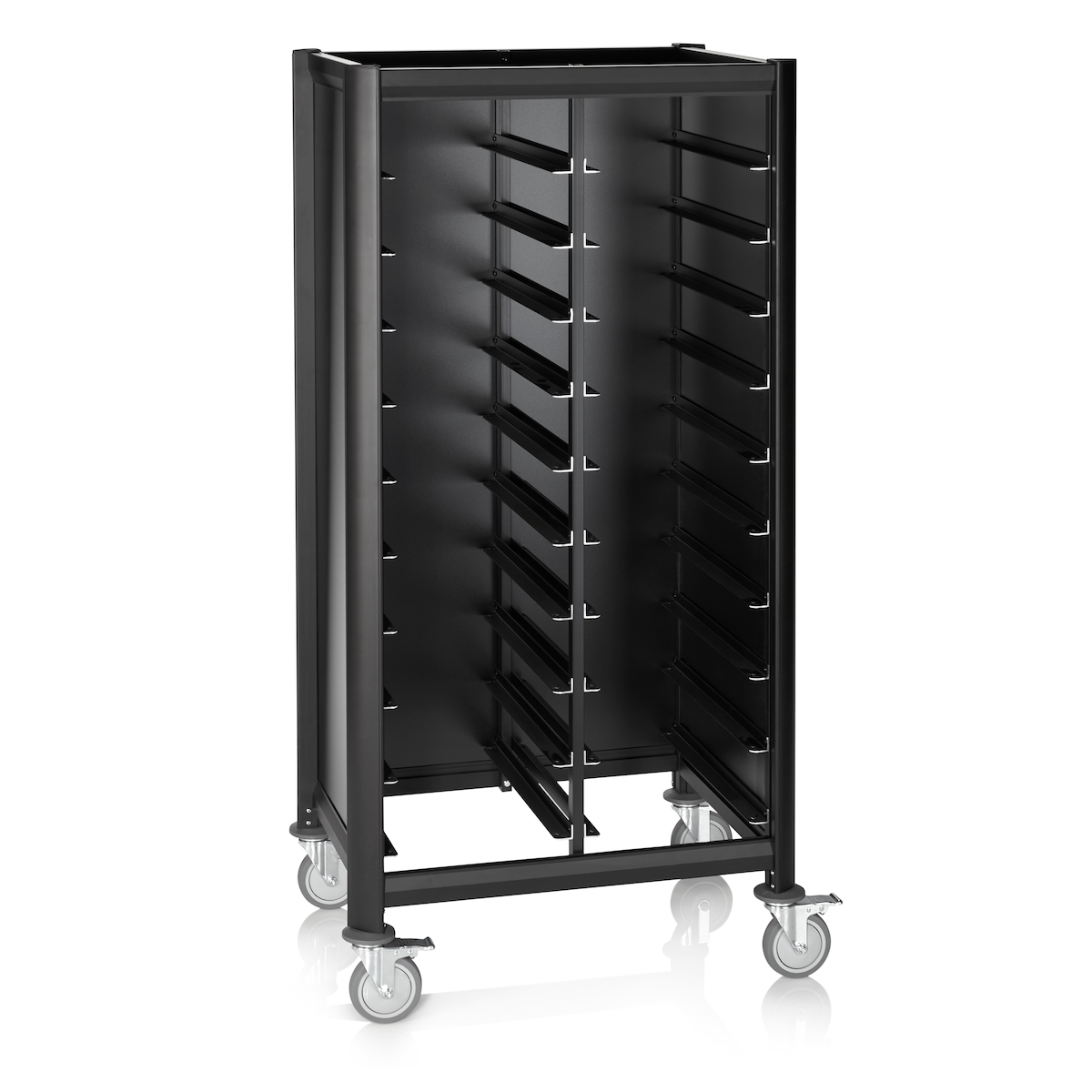 WAS Germany - GN Tablettwagen Trolley Mensa, 1/1 für 2x10 Tabletts, schwarz, 80 x 60 x 165 cm, MDF/Alu
