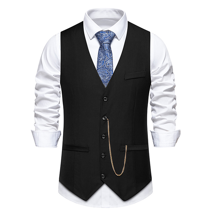 Men's Vest Gilet Daily Wear Vacation Going out Vintage Fashion Spring Fall Button Polyester Comfortable Plain Single Breasted V Neck Regular Fit Black Burgundy Dark Navy Gray Vest
