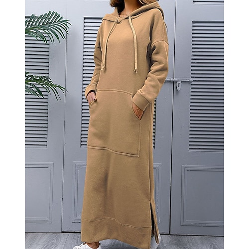 Per donna Abito Midi Abito con Cappuccio Moda Moderno Quotidiano Ufficio Uscire Vestibilità regolare Semplice Manica Lunga Con Cappuccio Nero Vino Viola Arancione Primavera Autunno Inverno