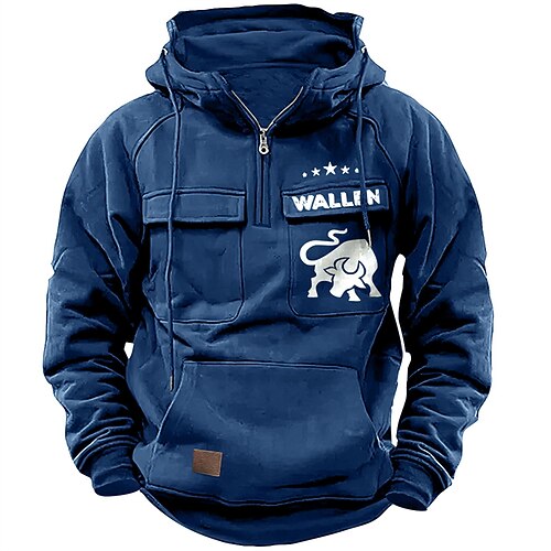 Per uomo Maglione Felpa con cappuccio e zip corta Vino Blu marino Verde Grigio Azzurro Con Cappuccio Grafico Tasca Casuale Quotidiano Ferie Streetwear Casual Autunno Inverno Abbigliamento Felpe con