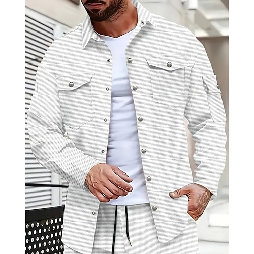 Per uomo Camicia Camicia Estiva Camicia casual Camicia con Bottoni Nero Bianco Giallo Rosa Vino Manica Lunga Semplice Bavero Vacanza Camicia hawaiana Tasca Abbigliamento Poliestere Moda Casual