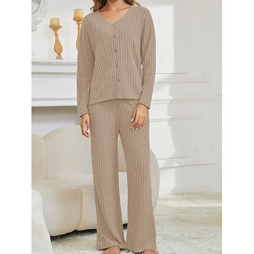 Per donna Set Pigiama Casual Comfort Colore Puro Cardigan con Bottoni Elastico in vita Maglietta Pantalone Casa Quotidiano Manica Lunga Scollo a V Blu Rosa Vino Marrone Primavera Autunno Inverno