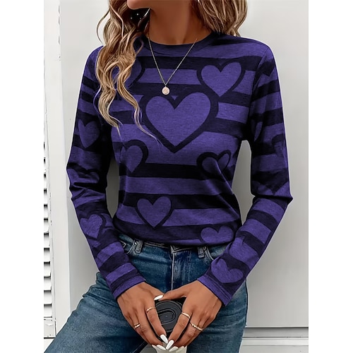 Per donna Maglietta Grafico Geometrico Vintage Elegante Moderno Manica Lunga Girocollo Top Regolari Quotidiano Weekend Stampato Blu Vino Viola Verde Grigio Autunno Inverno