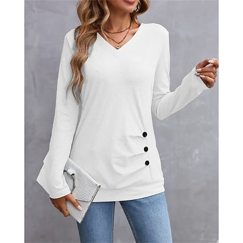 Per donna Maglietta Tinta unica Semplice Elegante Vintage Moda Manica Lunga Scollo a V Top Regolari Quotidiano Uscire Weekend Patchwork Bottoni Nero Bianco Vino Grigio chiaro Primavera Autunno