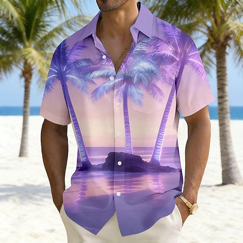 Per uomo Albero di Cocco Colore sfumato Piante Tropicali Camicia Camicie hawaiane Camicia Aloha Manica Corta Hawaiano Vacanza Ferie Estate Collo ripiegato Stampa 3D Una tasca anteriore Camicia tipo