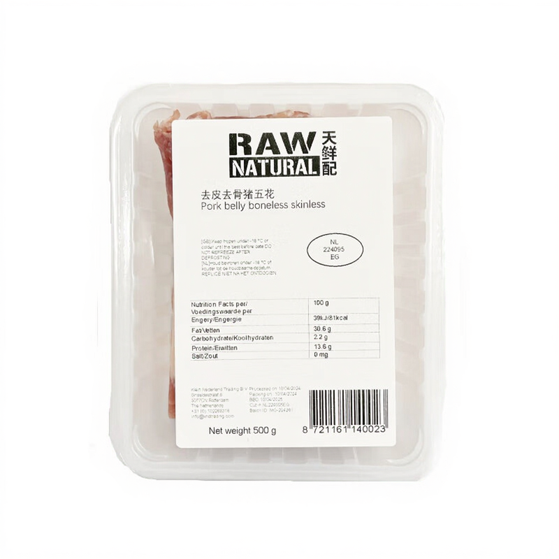 RAW NATURAL Schweinebauch ohne Knochen und Haut 500g