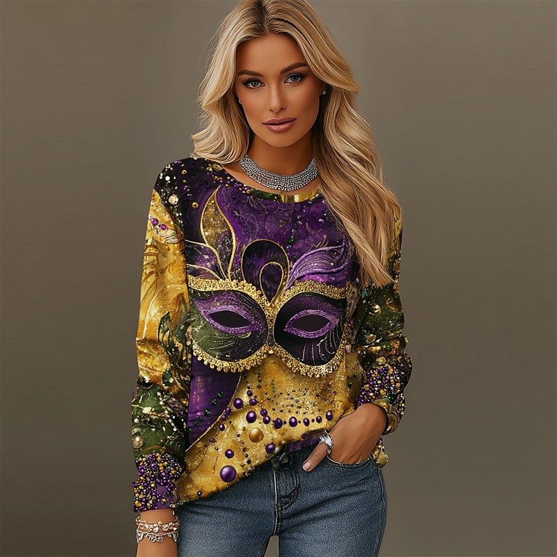 Carnival Women's T Shirt Graphic Vintage Fashion Stylish Long Sleeve Crew Neck Round Neck Regular Tops Daily Party Evening Wear Weekend Print Rainbow Spring Fall Winter