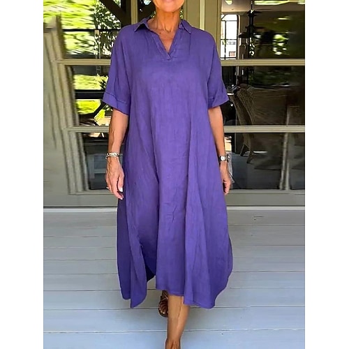 Per donna Abito Lungo Maxi Abito Finto cotone e lino Abito a Tubino Abito Camicia Vestito Casual Elegante Essenziale Casual Casuale Quotidiano Vacanza Vestibilità comoda Semplice Manica Corta