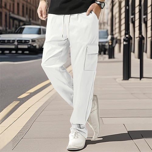 Herren Cargo-Hosen Hose Kordelzug Elastischer Bund Mehrere Taschen Einfach tragbar Outdoor Täglich Campen und Wandern Mode Klassisch Schwarz Weiß