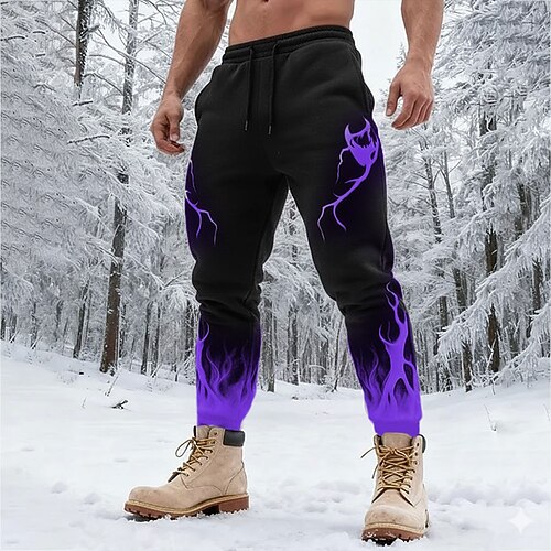 Herren Optische Täuschung Flamme Jogginghose Hose Mittlere Taille Kordelzug Elastischer Bund Modisch lässig Outdoor Campen und Wandern Jagd Sportliche Jogginghose mit Taschen Herbst Winter 3D-Druck