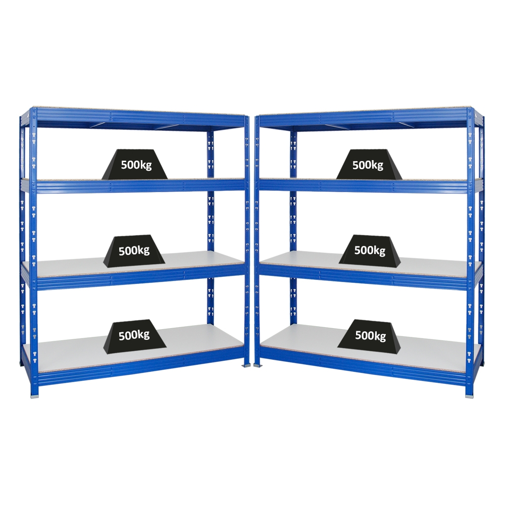 PROREGAL Mega Deal 2x Profi Schwerlastregal Rhino | HxBxT 180x160x60cm | 4 Melamin-Ebenen 16mm | Fachlast 500kg | Blau