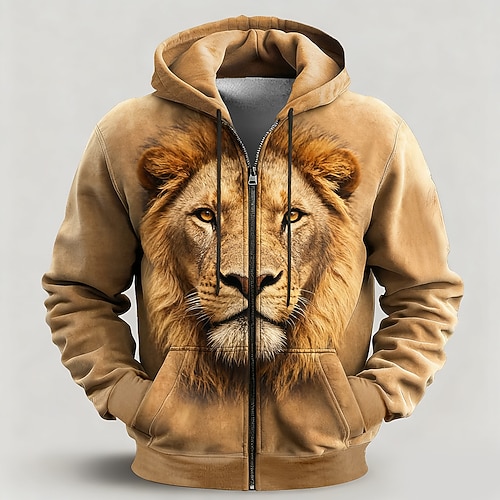 Per uomo Lupo Stampa 3D Giacca di pelle Felpa Cool Quotidiano Fantasia Pantaloni Tattici Collo alla coreana All'aperto Abbigliamento casual alla moda Feste Blu Blu 3# Blu 2# Con zip Primavera Autunno