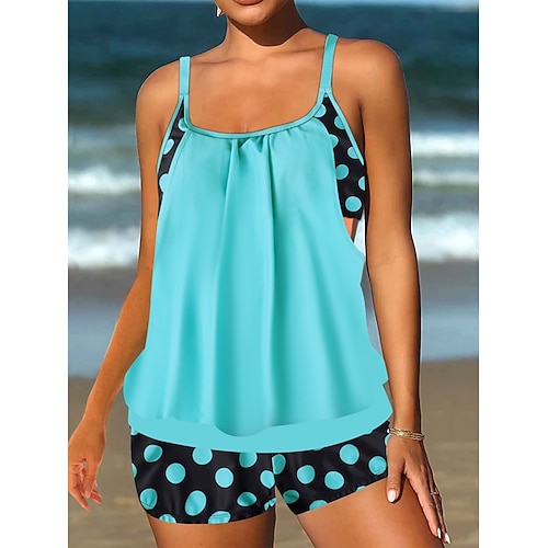 Damen Tankini 2-teiliges Badeanzug Shorts Bauchkontrolle Hohe Taille Schlank Rücklos Urlaub Strandbekleidung Polka Dot U-Ausschnitt Ärmelloses Badeanzug