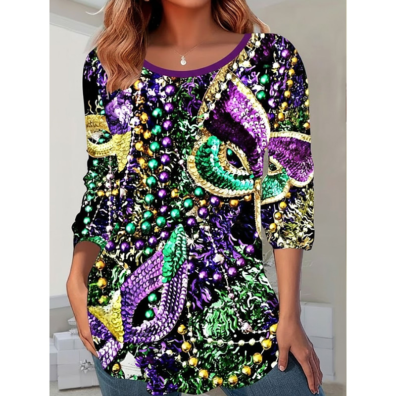 Carnival Women's T Shirt Graphic Geometric Vintage Stylish Modern Long Sleeve Crew Neck Regular Tops Daily Weekend Print Purple Summer Spring