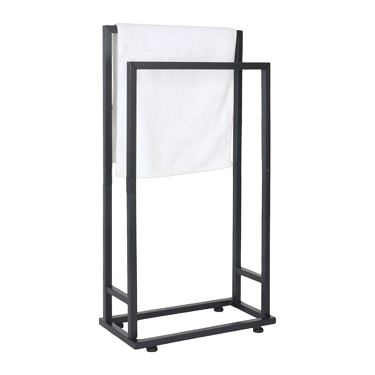 Relaxdays Handtuchständer, HxBxT: 77 x 41 x 21 cm, Metall, 2 Stangen, stehender Handtuchhalter, Badezimmer, schwarz
