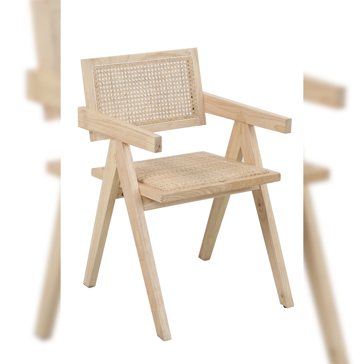 SIT Möbel Armlehnstuhl mit Rattan-Sitzfläche | gepolsterter Sitz | Hevea Holz naturfarben | B 52 x T 58 x H 78 cm | 02411-01 | Serie STUHL