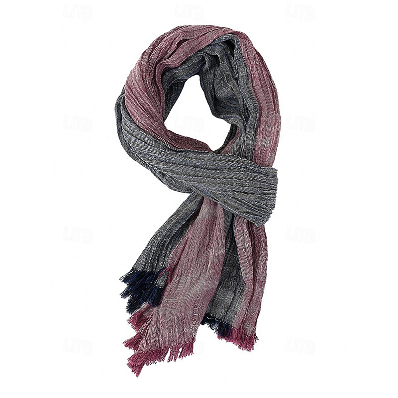 Men's Striped Cotton Scarf – Lightweight Soft Fringed Wrap for Fall Winter, Casual Vintage Style Shawl for Travel, Daily Wear Outdoor Activities