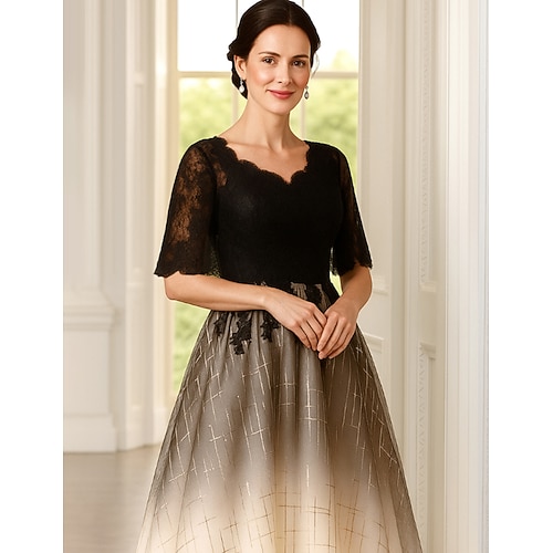Abito da Festa O-Line Lunghezza Tè Abito da Cocktail Abito da Sposa O-Line Abito per la Madre della Sposa Maniche Intermedie Collo A Giro Elegante Vintage Festa con Strass Colore Blocco