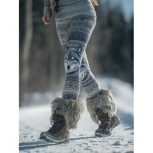 Leggings da donna Viking Boho vacanza stile etnico vintage a lunghezza intera vita alta animale grafico quick dry traspirabilità morbido elasticizzati formali outdoor vacanza grigio primavera autunno