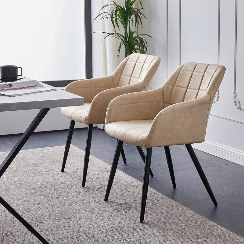 CLIPOP Faux Leather Dining Chairs Set of 2, Lounge Reception Chairs with Arms and Metal Legs, Padded Accent Armchair for Kitchen Dining Room, Living Room Corner Bedroom 067 pu cream 55*60*82.5 cm
