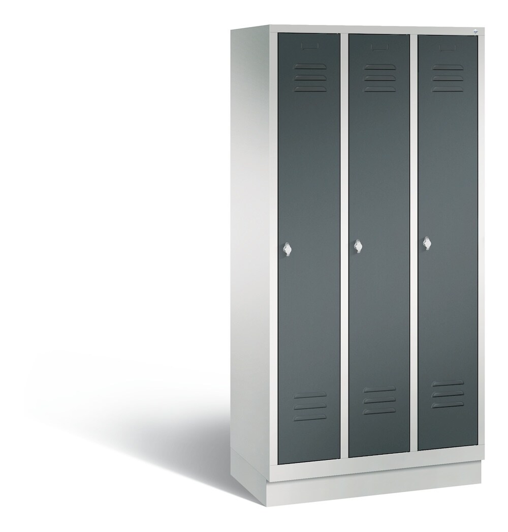 C+P Spind Classic mit Sockel | 3 Abteile | HxBxT 180x30x50cm | Lichtgrau/Anthrazit von PROREGAL