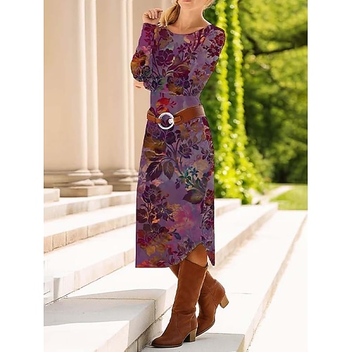 Per donna Abito Midi Tubino Abito a Tubino Casual Quotidiano Vestibilità regolare Grafico Paisley Astratto Manica Lunga Girocollo Rosso Blu Viola Verde Primavera Autunno Inverno