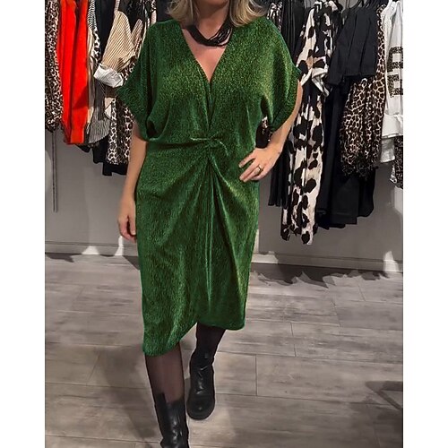 Per donna Abito Midi Vestito Casual Vestito T-Shirt Moderno Quotidiano Uscire Weekend Vestibilità regolare Semplice Manica Corta Scollo a V Nero Vino Marrone Verde Primavera Autunno