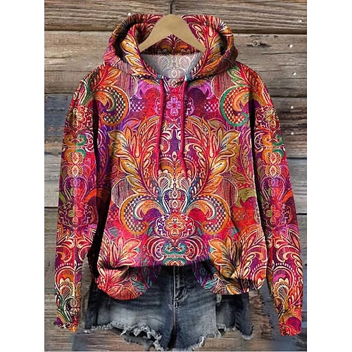 Per donna Felpa con cappuccio Grafico Caldo Vintage Moda Manica Lunga Con Cappuccio Top Regolari Streetwear Abbigliamento Quotidiano Ferie Stampato Rosso Blu Viola Marrone Verde Autunno Inverno