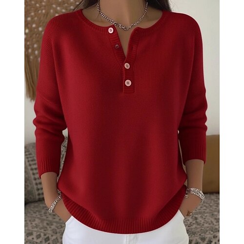 Per donna Felpa Maglione Moda Streetwear Casual Tinta unica Scollo a V Lavorato a maglia Manica Lunga Top Regolari Maglia Quotidiano Ferie Uscire Rosso bordeaux Nero Autunno Inverno