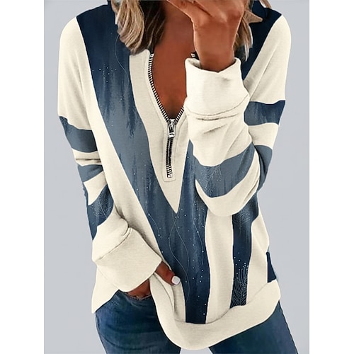 Per donna Felpa Pullover Felpe con cerniera Grafico Geometrico Moda Casual Manica Lunga Girocollo Top Regolari Streetwear Abbigliamento Quotidiano Casuale Cerniera Stampato Blu Primavera Autunno