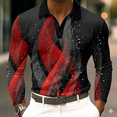 Herren 3D Geometrisch Polo Langarm Polo-Shirts Revers Lässig Outdoor Straße Athleisure Alltagskleidung 3D-Druck Knöpfe Frühling Herbst Winter Meerblau Rote Grün