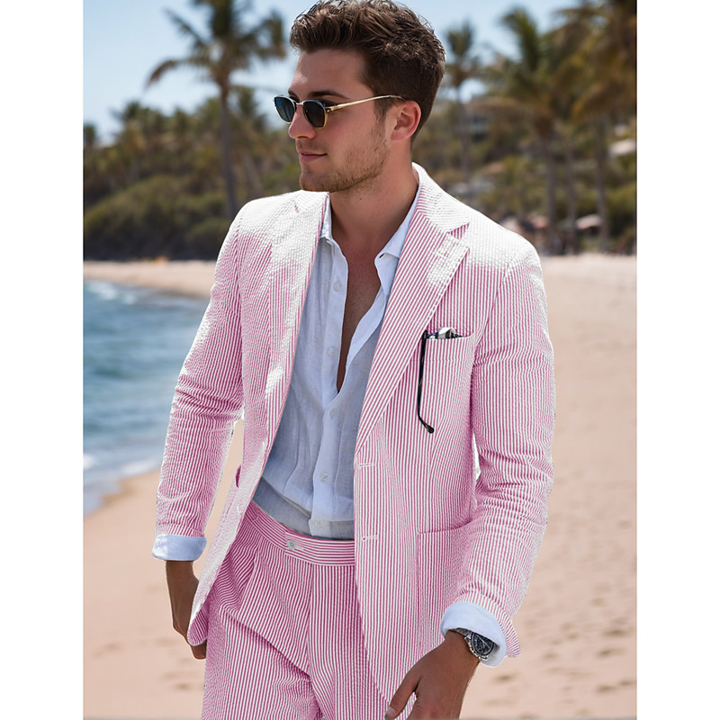 Men's Beach Wedding Suits Peak Pink Navy Blue Solid Colored Standard Fit 2 Piece Single Breasted Two-buttons