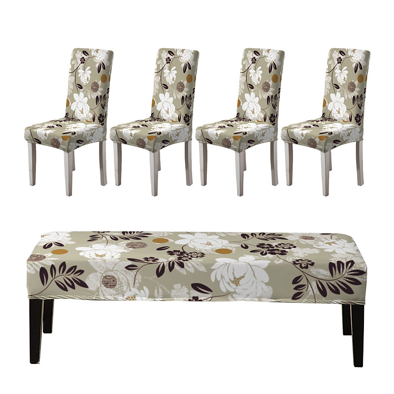 Printed Dining Chair Covers and Bench Covers Sets suitable for dining chairs includes 5 pieces 4 chair covers and 1 bench cover