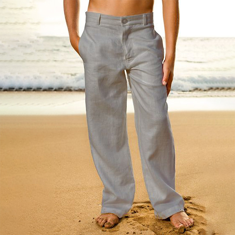 Men's Linen Pants Trousers Summer Pants Beach Pants Front Pocket Straight Leg Plain Comfort Breathable Casual Daily Holiday Fashion Basic Black White