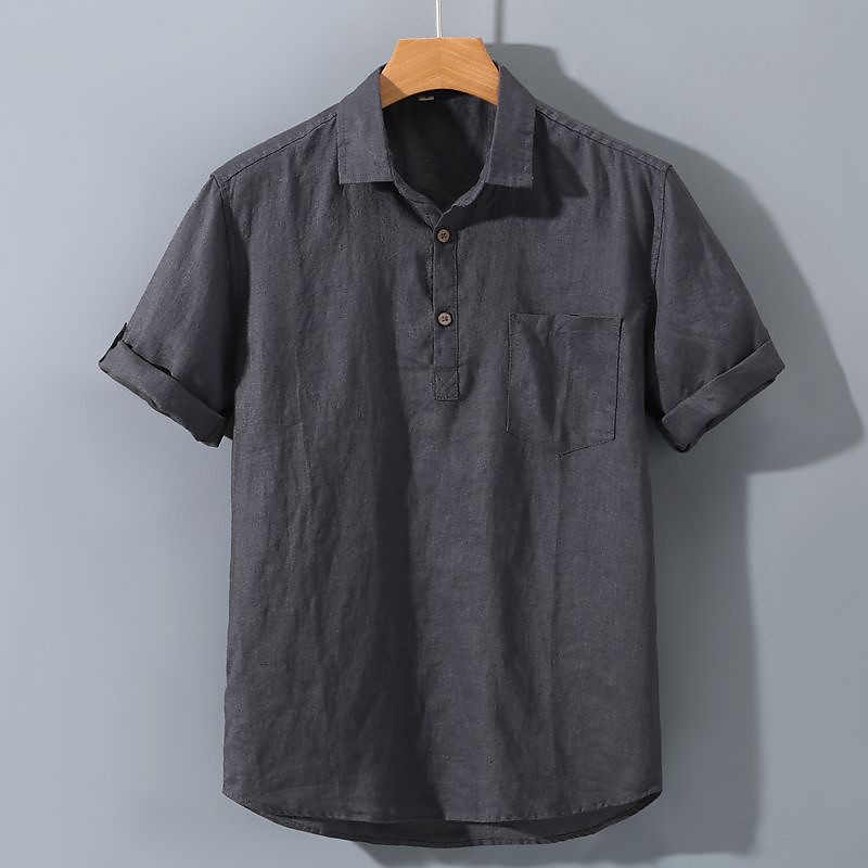 Men's Shirt Casual Shirt Cotton Linen Shirt Plain Vacation Street Black White Apricot Gray Short Sleeve Turndown Summer Clothing Apparel Button-Down