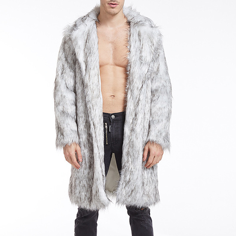 Men's Winter Jacket Faux Fur Coat Vacation Daily Thermal Warm Fleece Fall Winter Plain Fashion Streetwear Lapel Long White Yellow Gray Jacket