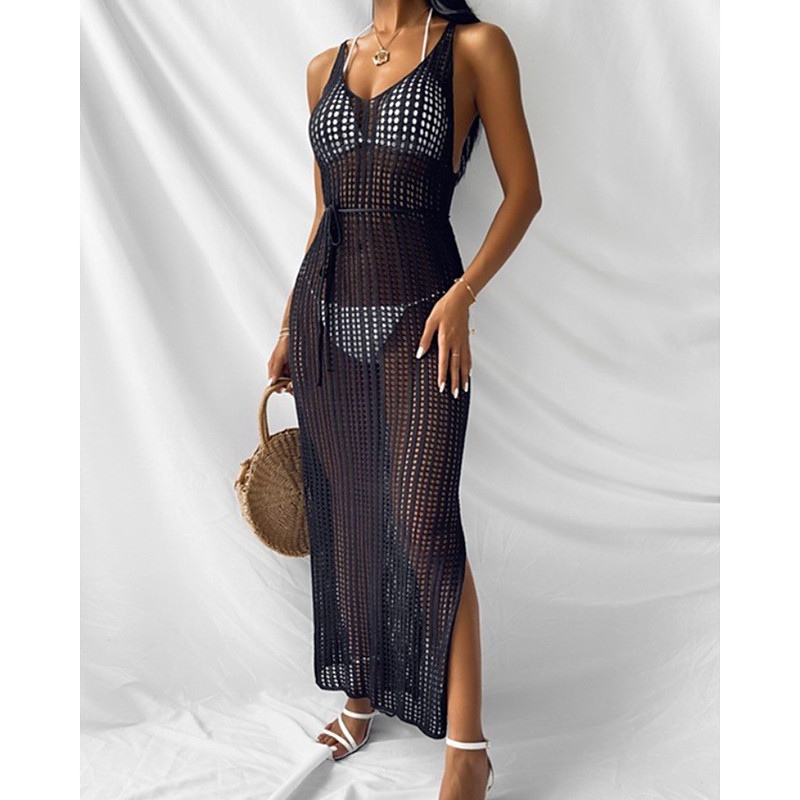 Women's Swimwear Cover Up Dress Swimsuit Cut Out Vacation Beach Wear Plain V Neck Sleeveless Bathing Suits