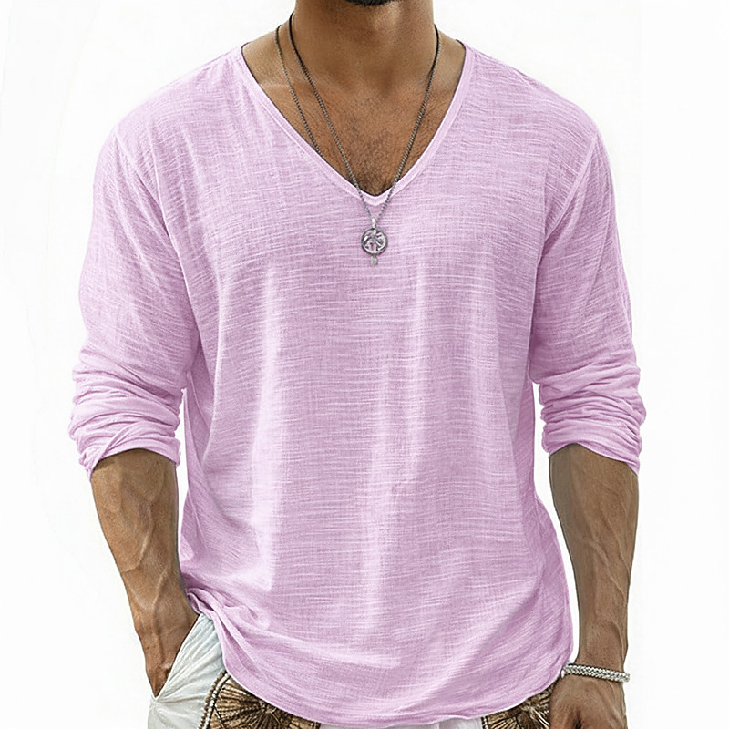 Men Tee Top Long Sleeve Shirt Linen T-Shirt Long Sleeve V Neck Summer Spring Spring Summer Solid Color Plain Daily Casual Street Style Plain Outdoor Street Causal Light Blue Black White Top Tee for