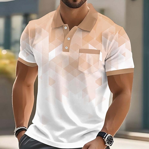 Herren Abstrakt Geometrisch Polo Kurzarm Polo-Shirts Revers Business-Casual Geschäft Athleisure Alltagskleidung 3D-Druck Knöpfe Sommer Gelb Rosa Blau