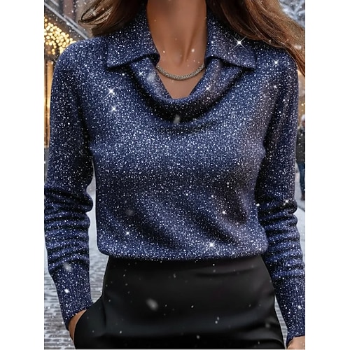 Per donna Camicia Camicia da lavoro Tinta unica Grafico Elegante Casual Manica Lunga Colletto a Camicia Top Regolari Lavoro Abbigliamento da sera Quotidiano Glitter Rosa Vino Blu marino Cammello Verde