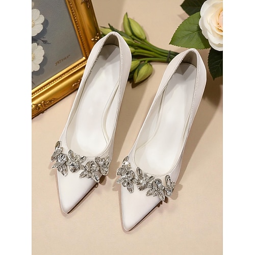 Scarpe con tacco a spillo da donna con punta affilata e cristalli satinati - eleganti décolleté a stiletto per abiti da sposa, da sera e da cocktail party
