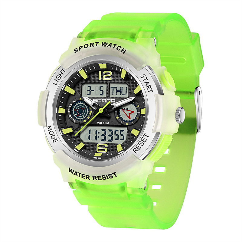 SANDA Women Men Digital Watch Outdoor Fashion Casual Business Luminous Alarm Clock Countdown Three Time Zones TPU Watch